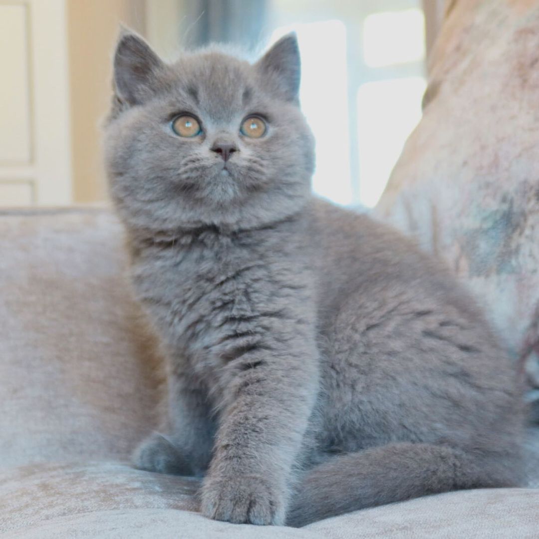 Baloo personifica la esencia tranquila y distinguida de los gatos British Shorthair en venta. Su pelaje azul-grisáceo, denso y afelpado, y sus ojos grandes de color cobre dorado crean una combinación de belleza hipnotizante. Criado por nuestros criadores especializados en Europa, Baloo promete convertirse en ese compañero sereno que buscará tu regazo en las tardes tranquilas.