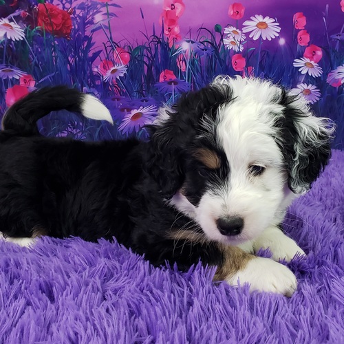 ¡Conoce a Emmy, una deslumbrante Mini Bernedoodle hembra que combina elegancia suiza con inteligencia excepcional! Esta extraordinaria cachorra, criada en nuestras instalaciones de Austria, representa la excelencia de una Mini Bernedoodle tricolor en venta. Su patrón de color único y expresión dulce prometen una compañera de belleza y astucia incomparables.