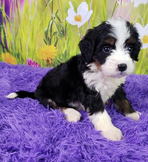 ¡Conoce a Hayley, una radiante Mini Bernedoodle hembra que combina alegría contagiosa con elegancia alpina! Esta extraordinaria cachorra, criada en nuestras instalaciones de Austria, representa la excelencia de una Mini Bernedoodle familiar en venta. Su expresión vivaz y patrón tricolor perfecto prometen una compañera llena de energía y devoción.